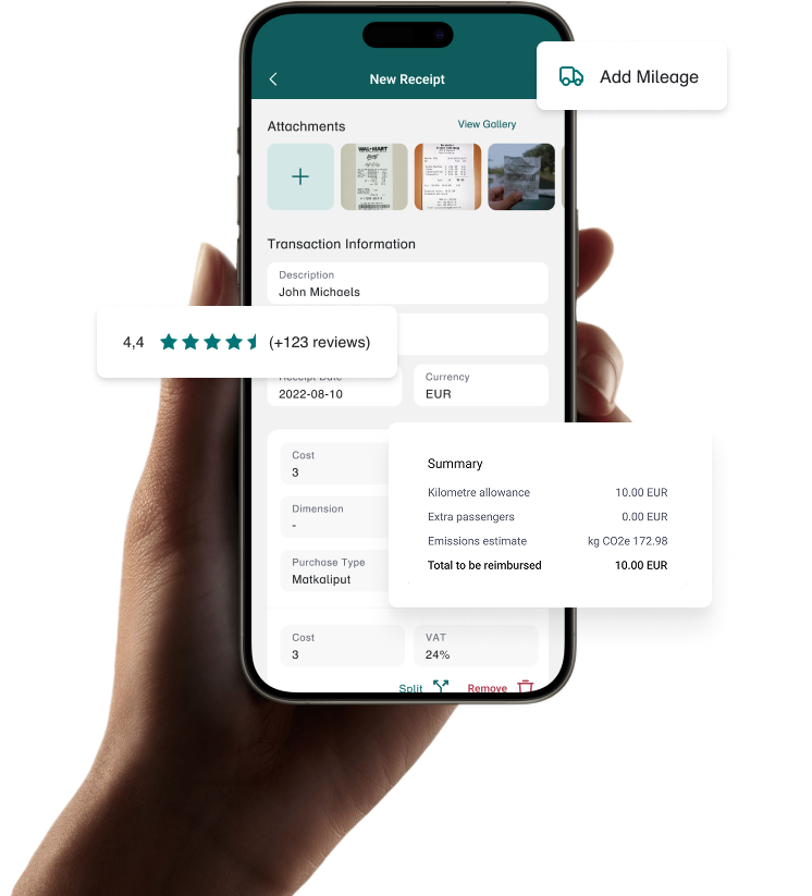 The Bezala travel expense app allows you to apply for local per diems and mileage allowances defined by the Swedish Tax Office.