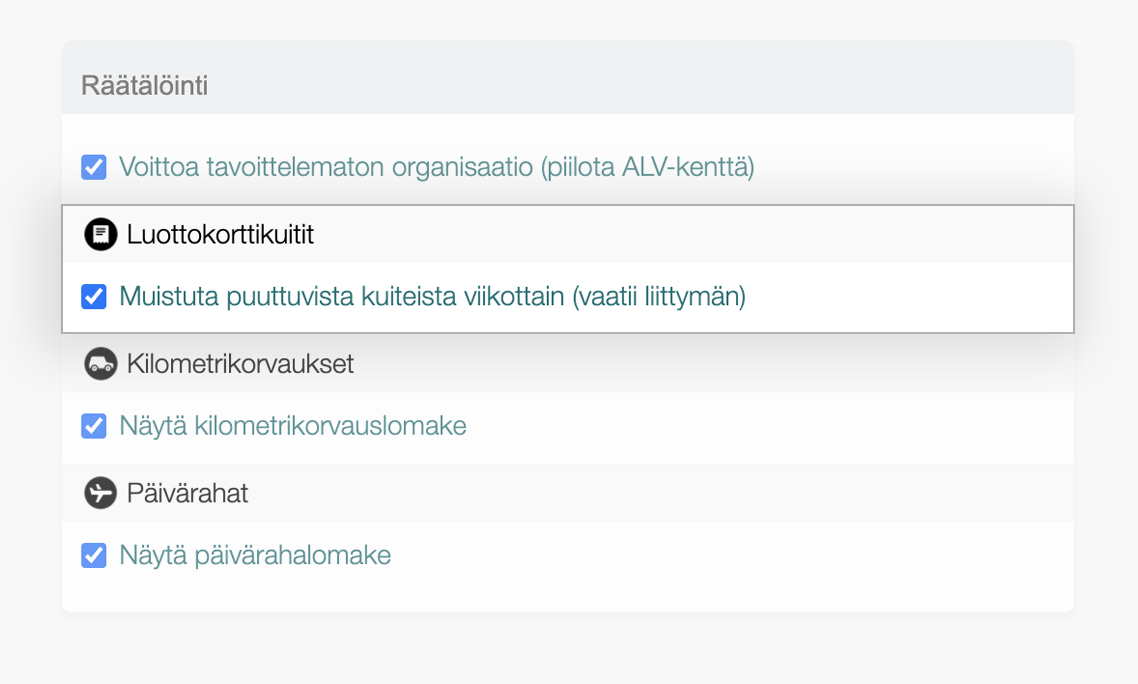 Kun organisaatiossa tehdään hankintoja luottokortilla ja matkustetaan paljon, teettää erilaisten kuittien ja matkalaskujen käsittely paljon työtä. Iso osa tuosta työstä on kuittien perään kyselyä, niiden etsimistä ja kuittiselvitysten tekemistä.