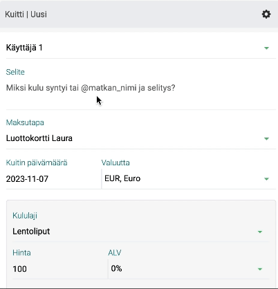 Kuittisovellus ehdottaa esimerkiksi oikeaa kirjanpidon tiliä kululle kirjoitetun selitteen mukaan. Lopuksi kuitti menee vielä tarkistettavaksi kirjanpitäjälle, joka hyväksyy kulun ennen kulun kirjanpitoon lähettämistä.