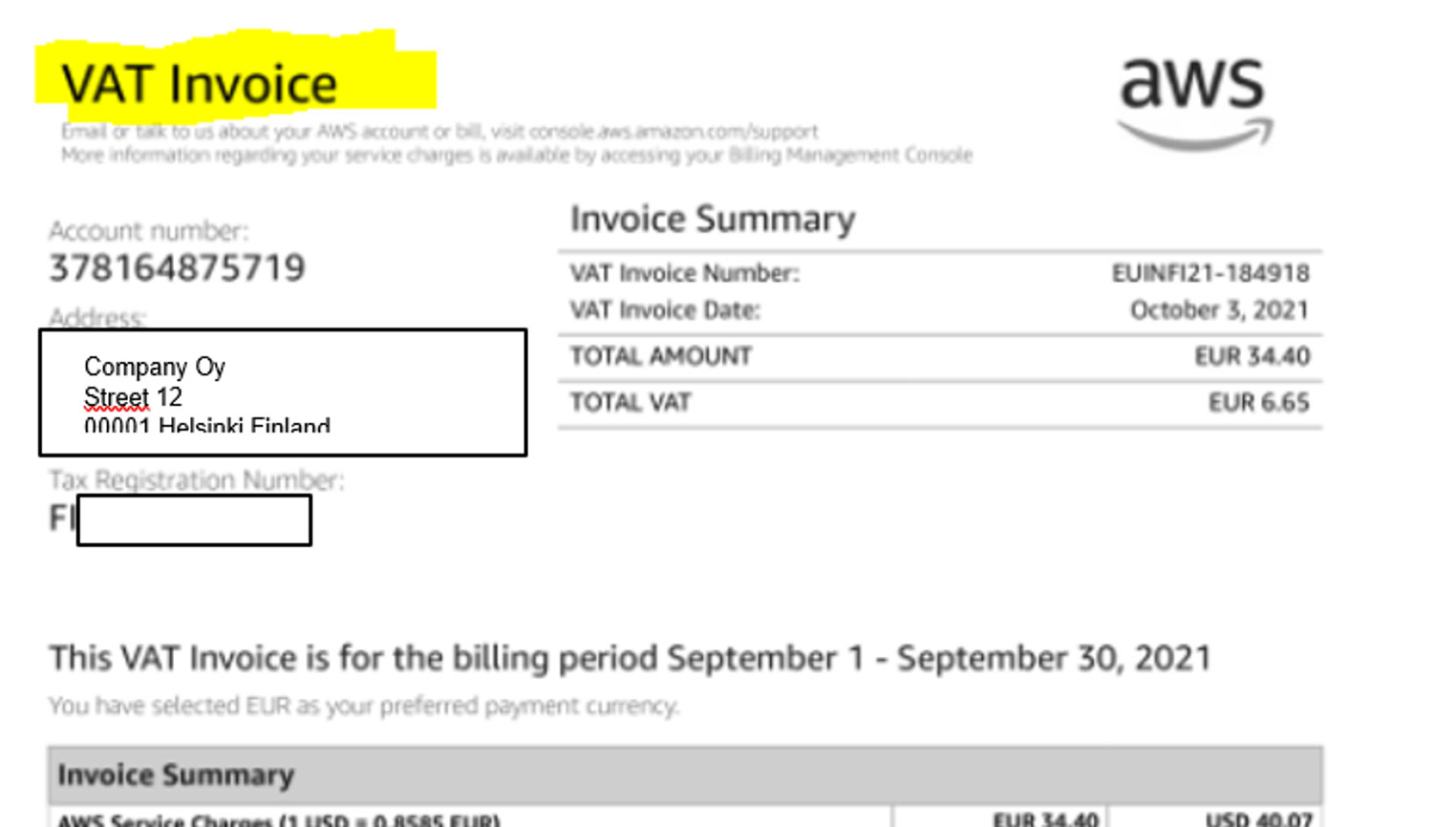 - Jos laskussa näkyy myyjän EU-alkuinen VAT-tunnus, se ei ole yritysten välisessä kaupankäynnissä merkitsevä, vaan viittaa myyntiin yksityishenkilöille.