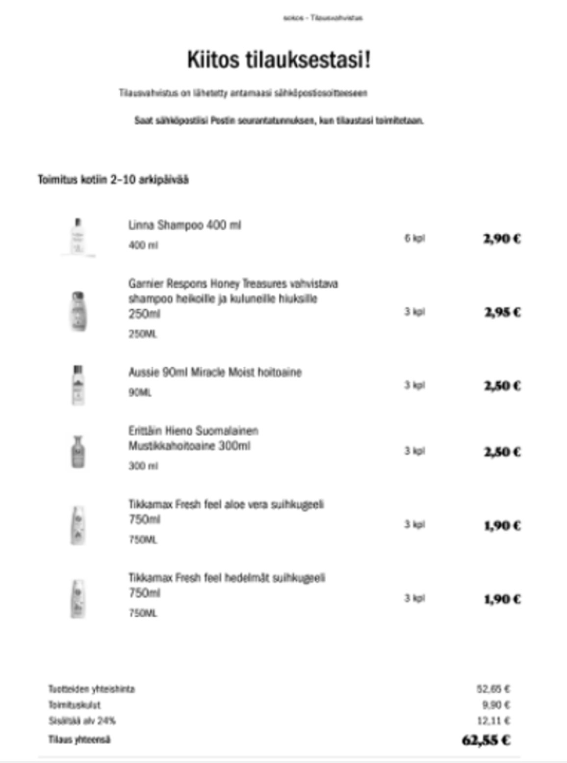b) Nettitilaus suomalaisesta verkkokaupasta