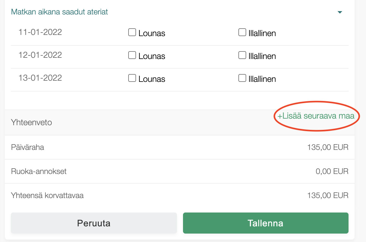 Enää sinun ei siis tarvitse täyttää useampaa päivärahahakemusta vaan saan lisättyä kaikki maat yhdelle ja samalle lomakkeelle.