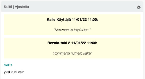 Kommentteja voivat kirjoittaa kaikki, joilla on oikeus nähdä kyseistä kulua. Näitä käyttäjiä ovat kulun lisääjä, hyväksyjä ja Kirjanpitäjä-rooliset käyttäjät. Yhdellä kululla voi olla useampi kommentti.