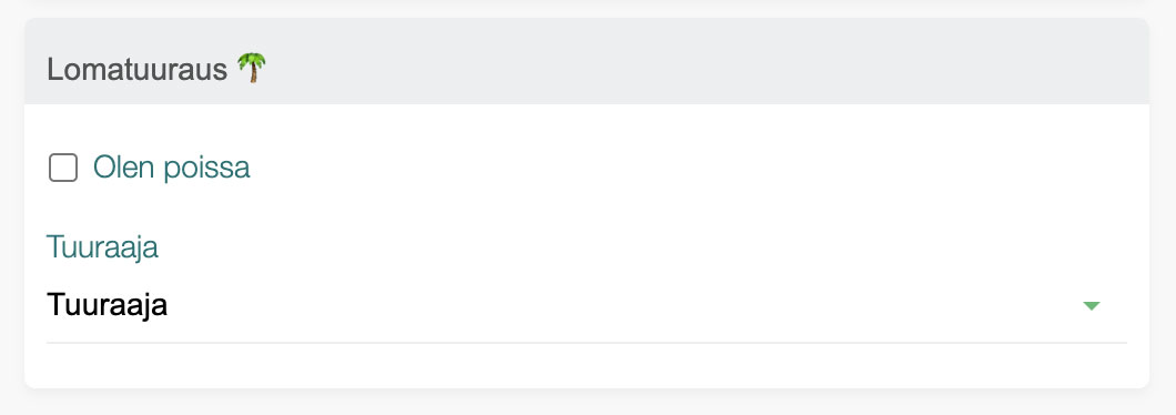 Aiemmin viime vuonna Bezalaan on kehitettiin lomatuurausominaisuus. Ominaisuuden ansiosta hyväksyntäkiertoihin tarvitse enää tehdä erillisiä muutoksia hyväksyjän loman aikana.