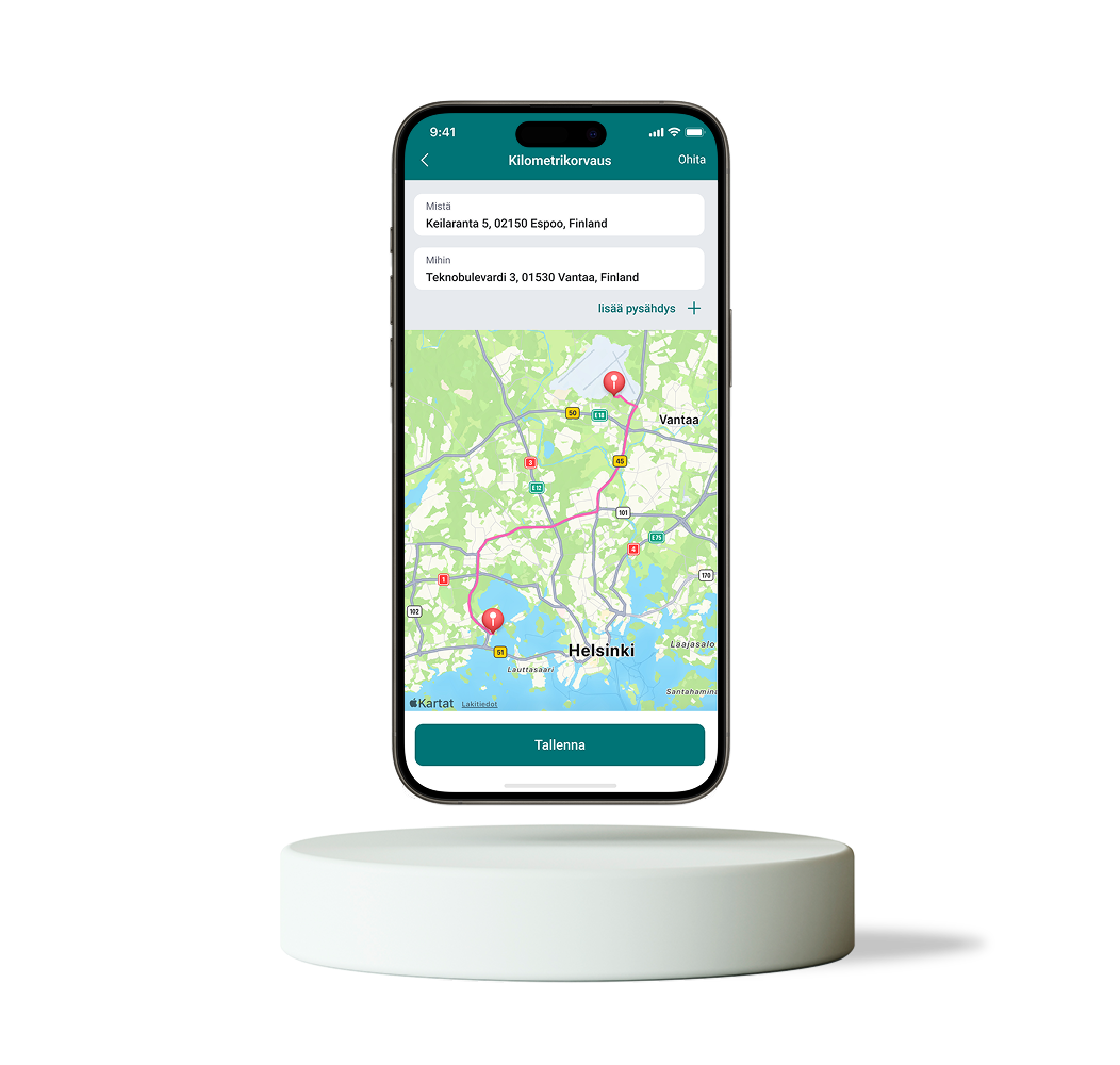 Bezalan kilometrilaskuri laskee ajetun matkan pituuden ja kilometrikorvausten määrän automaattisesti puolestasi; riittää että kerrot mistä mihin matkustit.